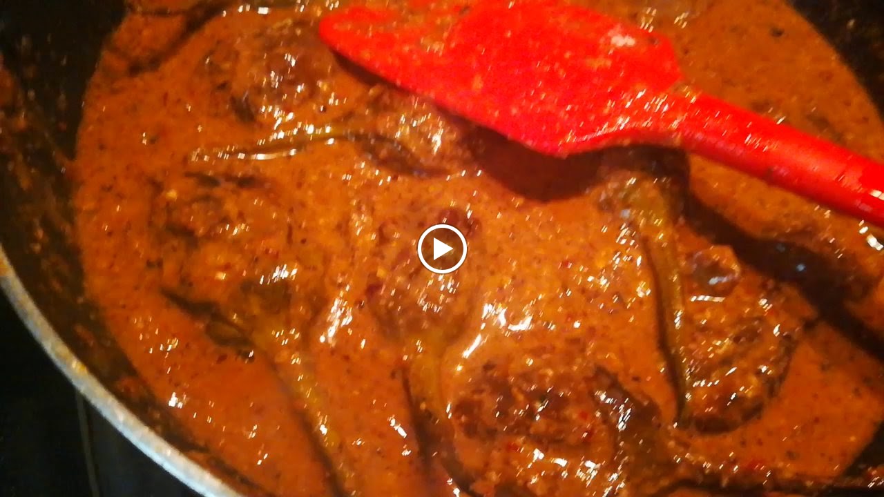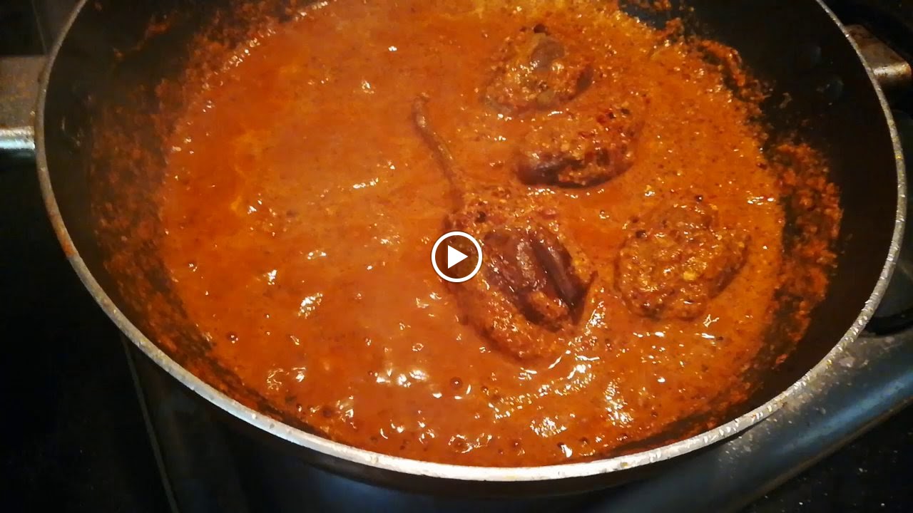 *The striped brinjals are slit into four and shallow fried in peanut oil.