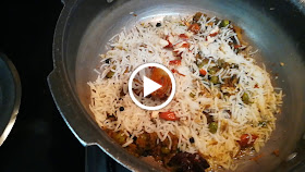 * In a large bowl pour water, bring to boil, add all the ingredients to be boiled with rice, add basmathi rice and cook till the basmathi rice is 90%done, drain water, spread it in a large tray. This will help the rice grains to be separate from each other.