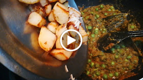 *In a preheated pan pour ghee, add cinnamon, badi elachi, green elachi, bay leaves, jeera, once it release aromatic flavour, add ground gravy masalas. Cook until oil or ghee separate. In this add roasted potatoes, boiled peas, cooked cauliflower florets and mix well, coat the masalas on the vegetables. Add a little salt, After about 5 minutes. Off the stove.